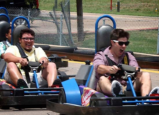 Go outdoor karting in Oklahoma at Celebration Station Oklahoma City! The smell and sound the gasoline karts make, will make you feel like you are on a real racing track!